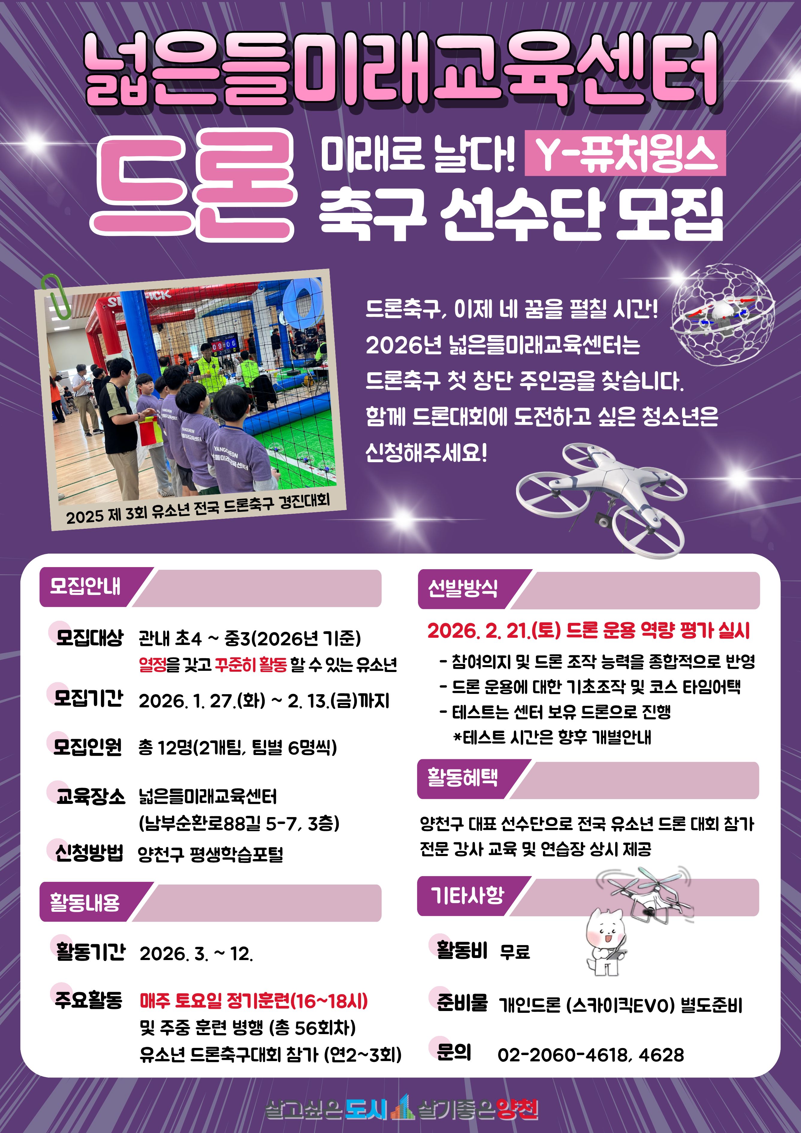 양천 ‘Y-퓨처윙스’ 드론축구 선수단 모집 [1.27.(화) ~ 2.13.(금)]